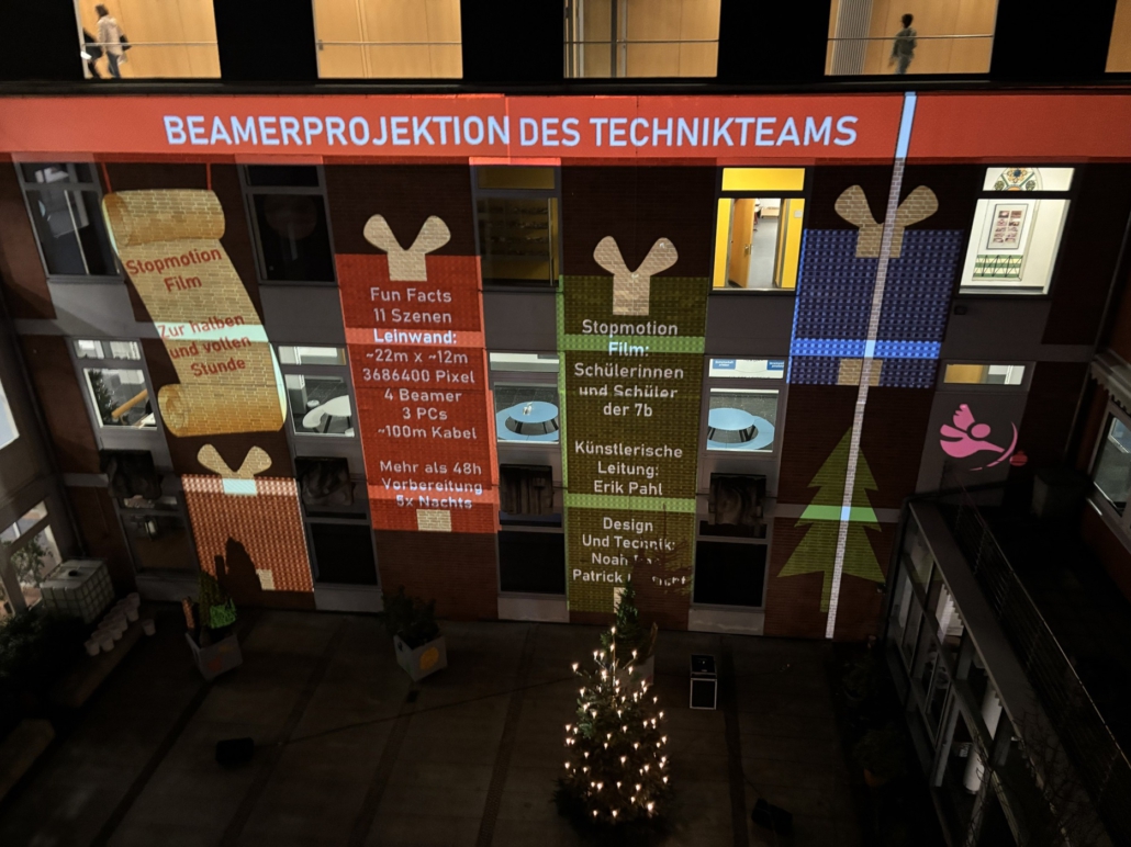 Ein besonderes Highlight erwartete die Gäste im Innenhof: Das Technikteam der Schule hatte dort eine beeindruckende Lichtshow vorbereitet,